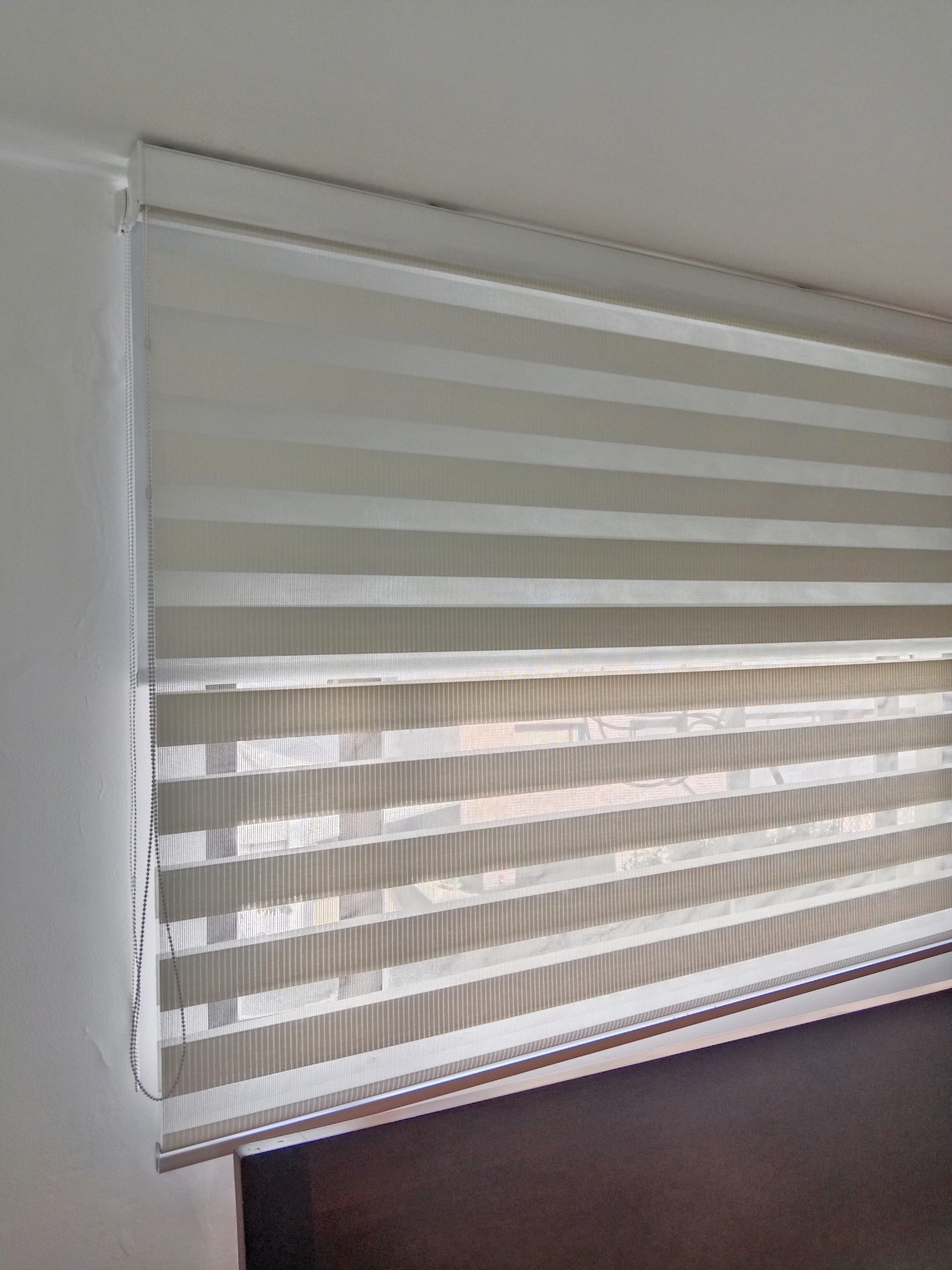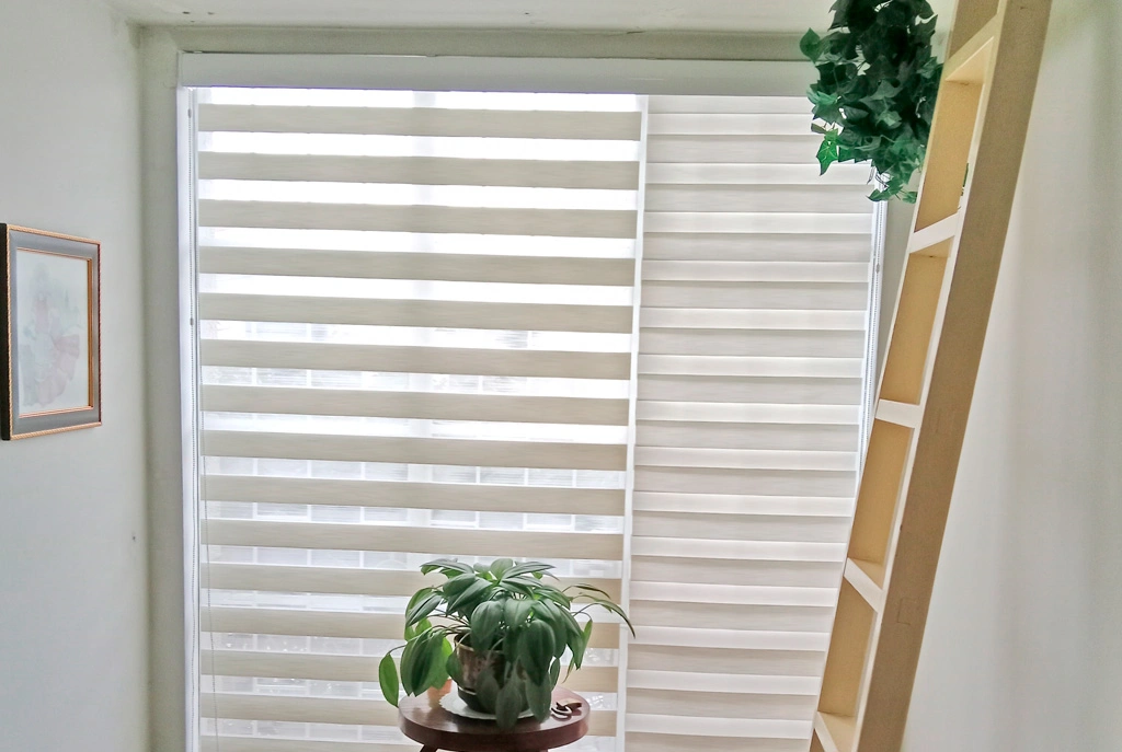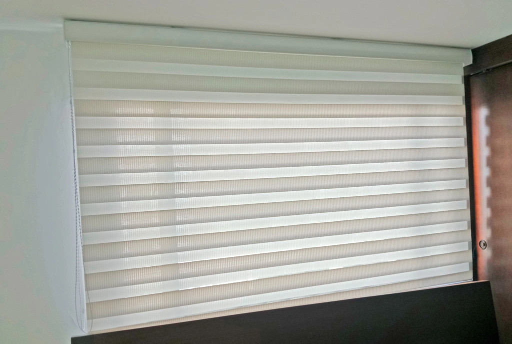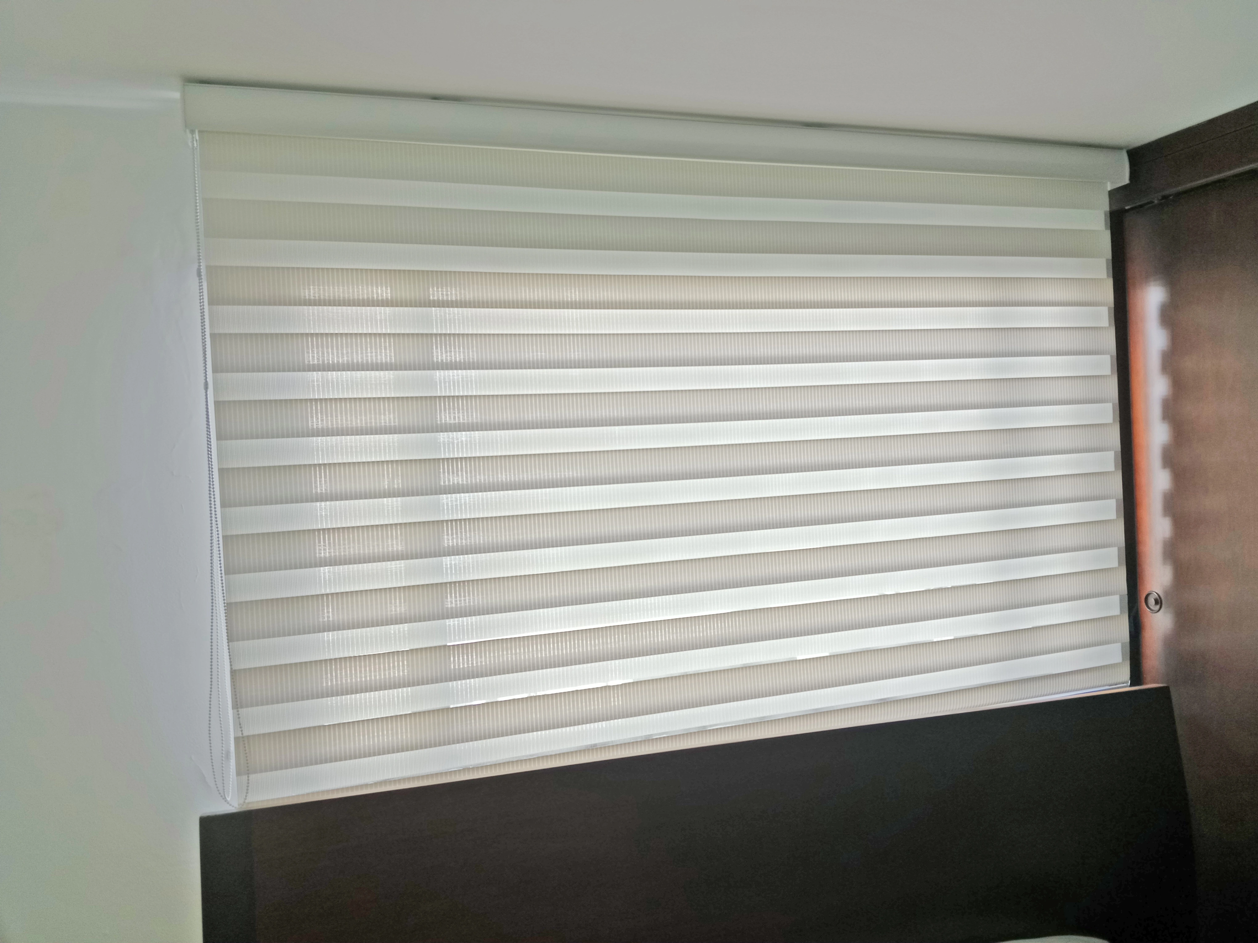 Cortina elegante versátil para cualquier ambiente por su doble función de materiales polyester, black Out y Screen.